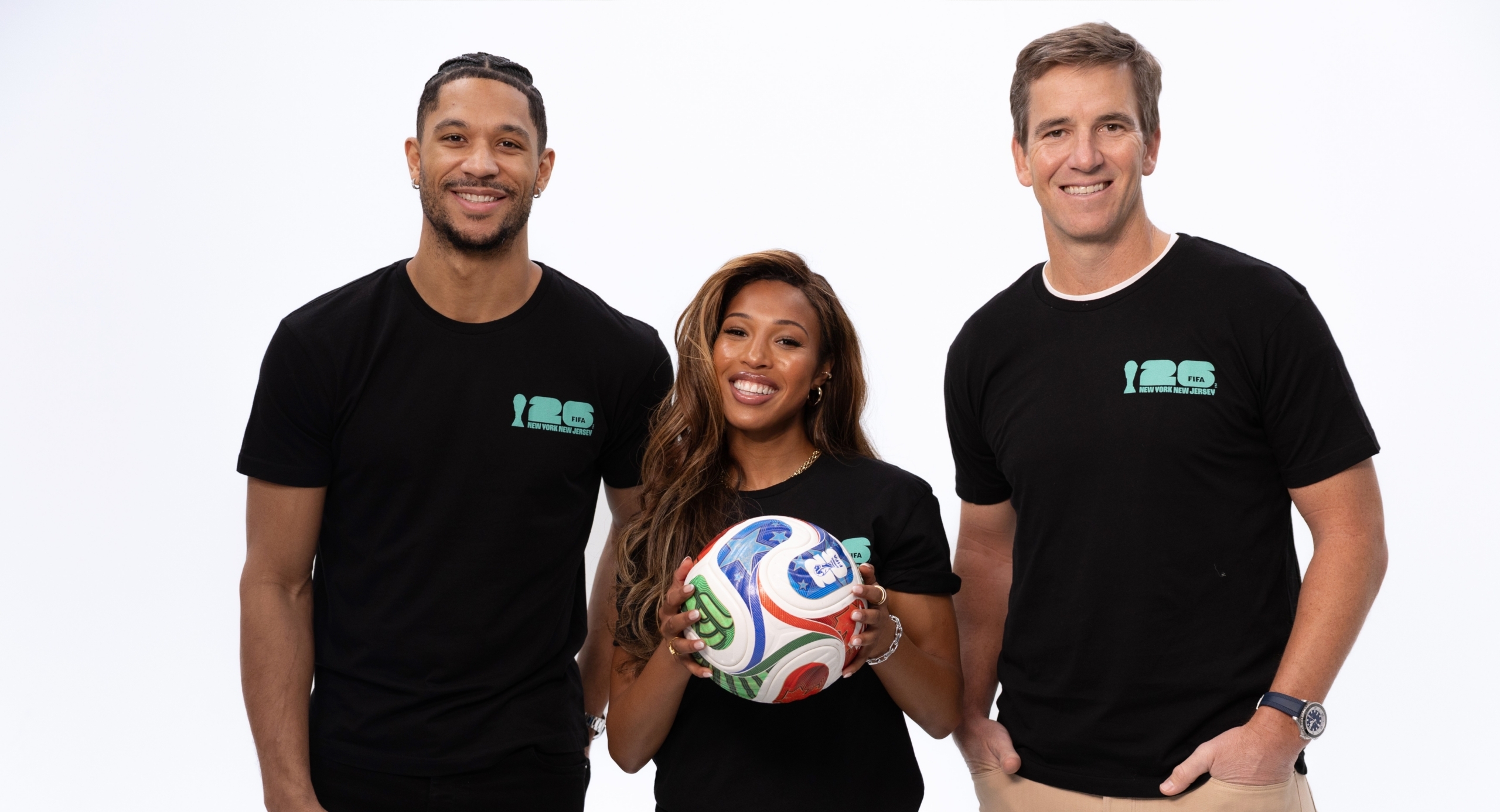 New York, NY (April 10, 2026) — Marking 100 days until the FIFA World Cup 2026™ Final, the New York New Jersey Host Committee today announced the appointment of a distinguished group of athletes named as Official NYNJ World Cup 2026 Ambassadors. Two-time Super Bowl champion Eli Manning, two-time NWSL Champion, Gotham FC and U.S. Women’s National Team star Midge Purce, and NCAA National Champion and New York Knicks guard Josh Hart will represent the region on the global stage in the lead-up to and during the tournament.